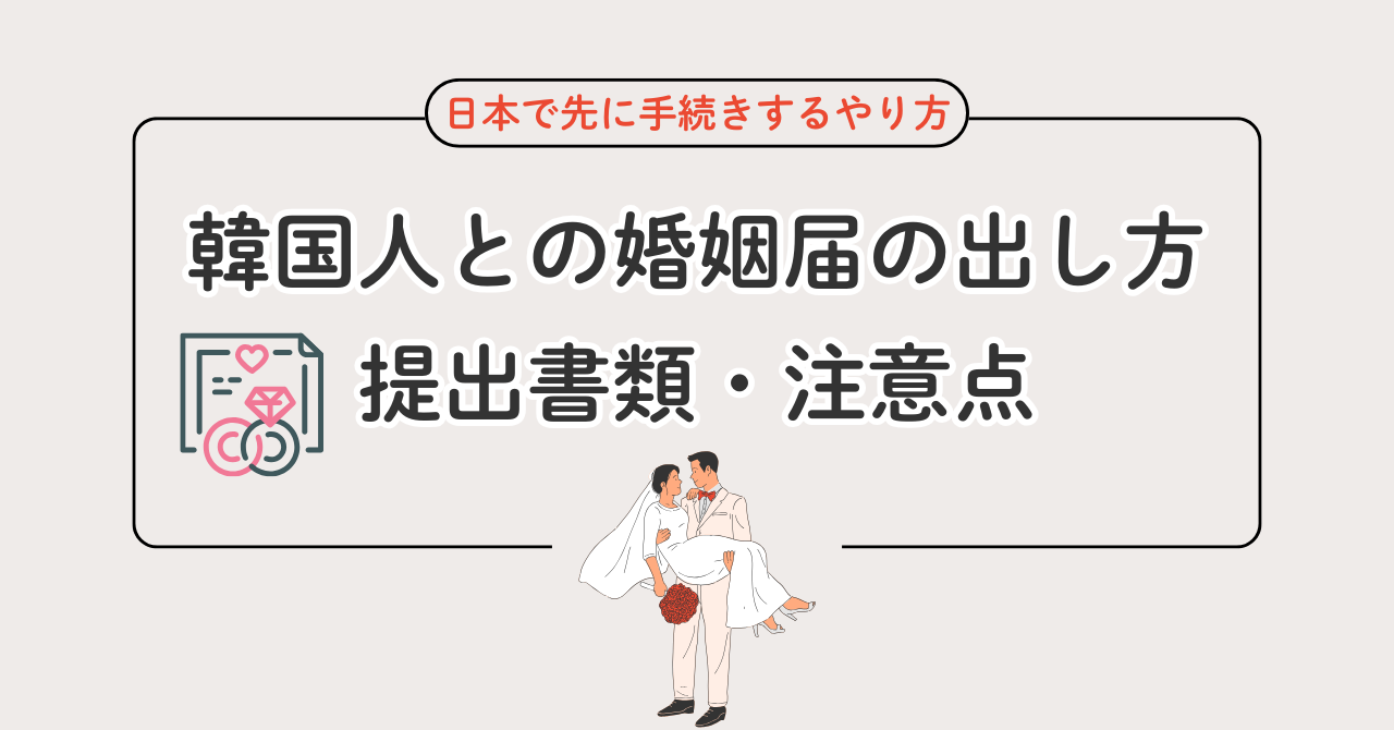 当サイトの人気記事Popular Post 【韓国結婚ビザ(F-6)】申請書類の書き方記入例 32 views 韓国人との婚姻届けの出し方【日本で先に手続する方法】提出書類・注意点まとめ 20 views 【体験談】不安だらけだった韓国の結婚ビザ(F-6)申請|必要書類・申請方法・取得までの流れを解説 15 views 【韓国人との交流が広がる!】趣味共有から友達作りに最適なアプリ”소모임(ソモイム)”をご紹介! 12 views 【駐大阪大韓民国総領事館に婚姻届けを提出した話】日本で婚姻届けが受理された後の手続き|韓国の婚姻届けの書き方も紹介 10 views 【韓国就職に役に立つ!】ソウルグローバルセンターが開催する“ビジネス韓国語クラス”を受講してみた 8 views 新着記事New Post 【体験談】不安だらけだった韓国の結婚ビザ(F-6)申請|必要書類・申請方法・取得までの流れを解説 2026.01.01 ビザ関連 【韓国人との交流が広がる!】趣味共有から友達作りに最適なアプリ”소모임(ソモイム)”をご紹介! 2025.12.20 韓国生活 【韓国結婚ビザ(F-6)】申請書類の書き方記入例 2025.12.15 ビザ関連 【駐大阪大韓民国総領事館に婚姻届けを提出した話】日本で婚姻届けが受理された後の手続き|韓国の婚姻届けの書き方も紹介 2025.11.27 日韓夫婦 ビザ関連 (2) 日韓夫婦 (4) 韓国生活 (2) maiワーホリ、留学を経て韓国に移住します!Profile韓国在住の日本人maiです! 韓国人の方と結婚し、結婚ビザ(F-6)の許可がおりました!2026年に韓国に移る予定です。 韓国の生活や現地のリアルな出来事など日記のように綴っていきます✍ また日韓カップルや日韓夫婦の方のお役に立てるような情報も発信していこうと思っています⭐ ゆっくり見て行ってください☺プロフィールを読むXInstagram