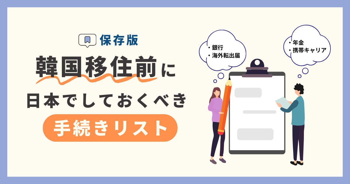 当サイトの人気記事Popular Post 【韓国結婚ビザ(F-6)】申請書類の書き方記入例 68 views 【体験談】不安だらけだった韓国の結婚ビザ(F-6)申請|必要書類・申請方法・取得までの流れを解説 60 views 韓国人との婚姻届けの出し方【日本で先に手続する方法】提出書類・注意点まとめ 29 views 【韓国人との交流が広がる!】趣味共有から友達作りに最適なアプリ”소모임(ソモイム)”をご紹介! 16 views 【駐大阪大韓民国総領事館に婚姻届けを提出した話】日本で婚姻届けが受理された後の手続き|韓国の婚姻届けの書き方も紹介 12 views 【韓国就職に役に立つ!】ソウルグローバルセンターが開催する“ビジネス韓国語クラス”を受講してみた 8 views 【保存版】韓国移住前に日本でしておくべき手続きリスト 1 views 新着記事New Post 【保存版】韓国移住前に日本でしておくべき手続きリスト 2026.02.05 韓国移住 【体験談】不安だらけだった韓国の結婚ビザ(F-6)申請|必要書類・申請方法・取得までの流れを解説 2026.01.01 ビザ関連 【韓国人との交流が広がる!】趣味共有から友達作りに最適なアプリ”소모임(ソモイム)”をご紹介! 2025.12.20 韓国生活 【韓国結婚ビザ(F-6)】申請書類の書き方記入例 2025.12.15 ビザ関連 ビザ関連 (2) 日韓夫婦 (4) 韓国生活 (2) 韓国移住 (1) maiワーホリ、留学を経て韓国に移住しました!Profile韓国在住の日本人maiです! 韓国人の方と結婚し、結婚ビザ(F-6)の許可がおりました!2026年の1月に韓国に移住しました。 韓国の生活や現地のリアルな出来事など日記のように綴っていきます✍ また日韓カップルや日韓夫婦の方のお役に立てるような情報も発信していこうと思っています⭐ ゆっくり見て行ってください☺プロフィールを読むXInstagram